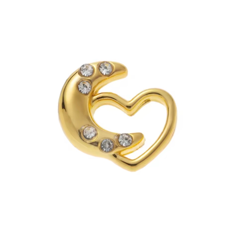 Goudkleurig hartje gecombineerd met de maan. Love you to the moon and back. De maan schitterd mooi door de witte zirkonia steentjes.