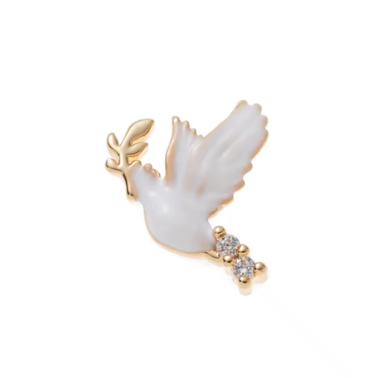 Witte duif voor world peace. Met een goud takje in zijn bek en voetjes van zirkonia.